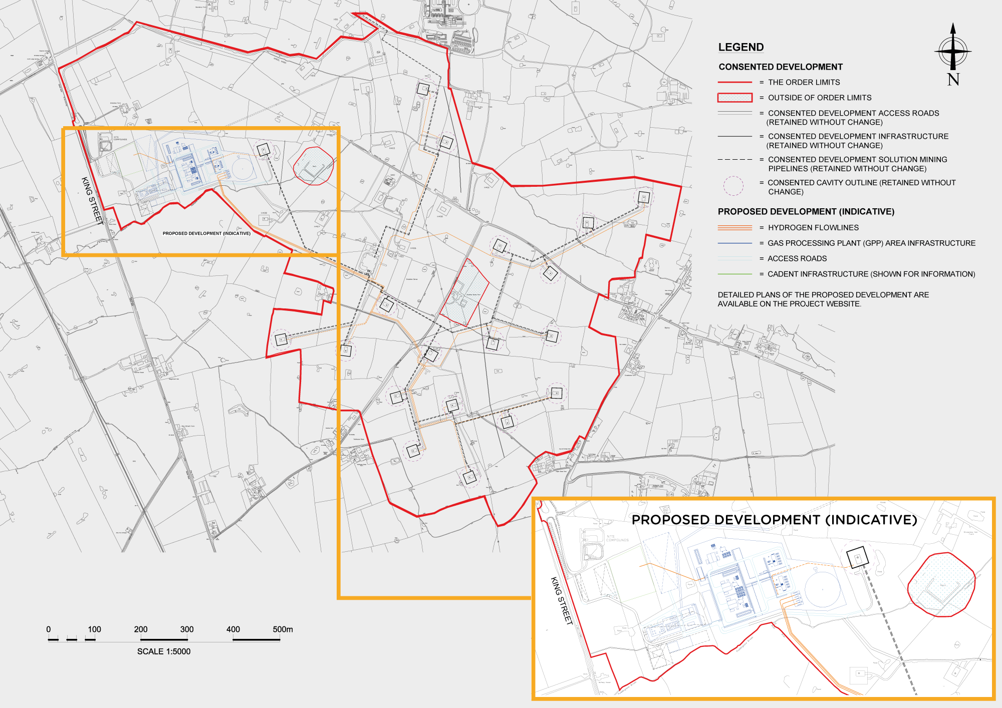 We are proposing a ‘Material Change’ to the KGSP plans approved in March 2017, to allow the project to store hydrogen rather than natural gas, improve the associated infrastructure and allow connection to the HyNet Hydrogen Pipeline, the regional hydrogen and carbon capture project planned to produce, store and transport hydrogen around the North West and North Wales.