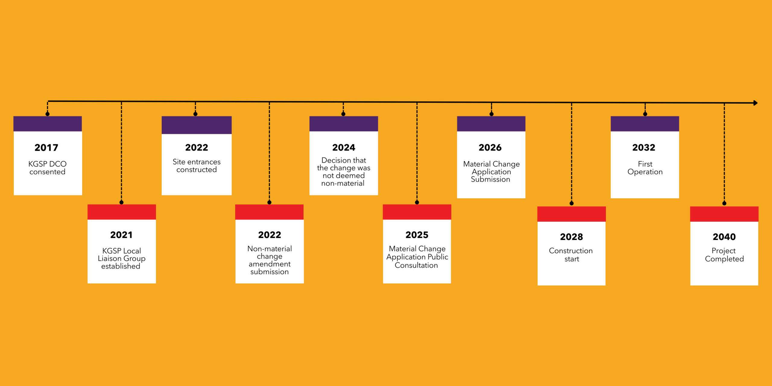 We are now preparing a Material Change Application to allow the change from gas to hydrogen storage. The planning process started early in 2025 and the stages progressed to date include environmental scoping, environmental survey and assessment stages alongside ongoing engagement with stakeholders and the KGSP Local Liaison Group. The next stage includes public consultation on the proposed changes to the DCO consented in 2017 and on a range of updated environmental information (For further information refer to the Environmental Information Updates).